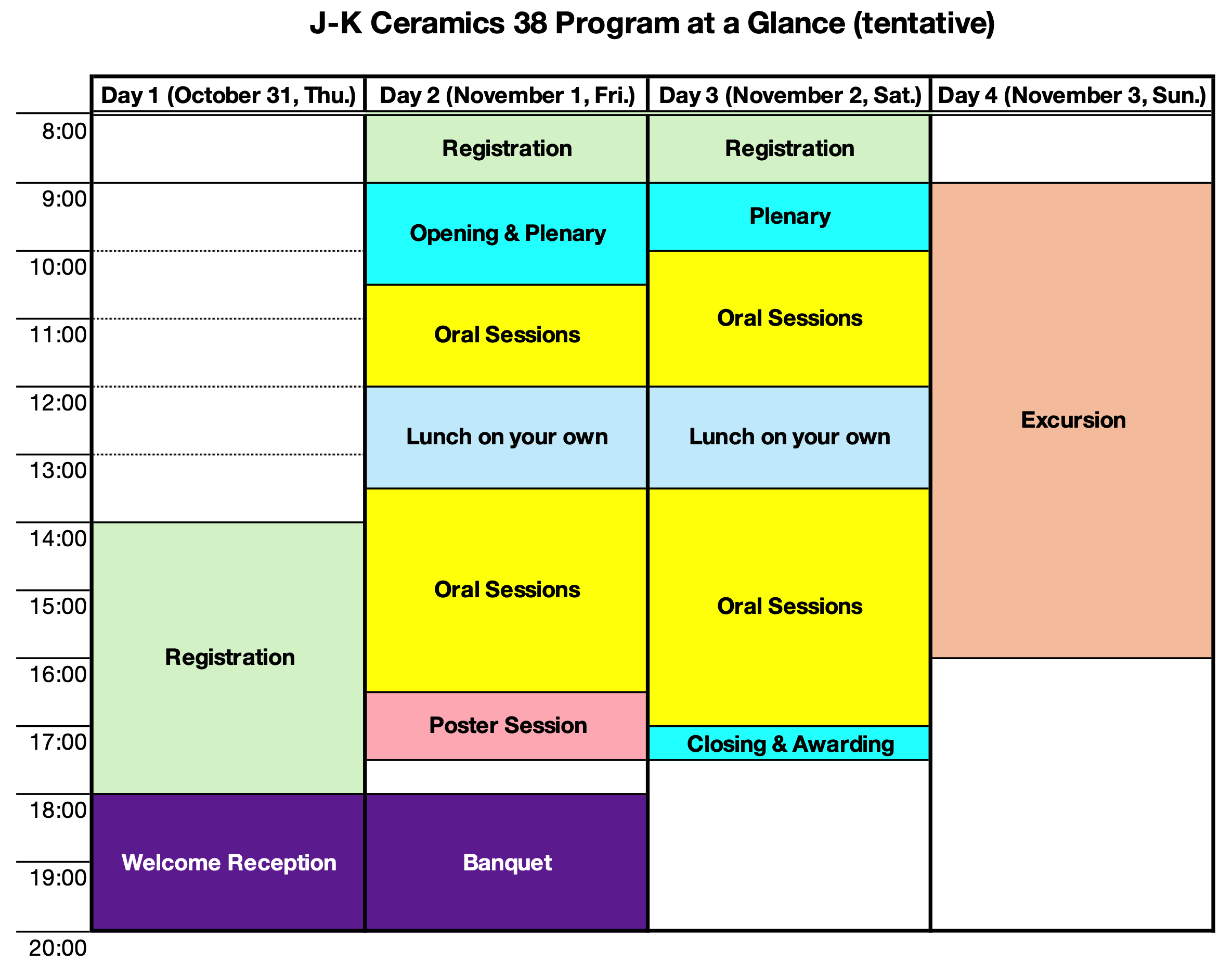 | November 1st (Fri) | Registration, Opening Ceremony, Plenary Lectures, Oral Sessions, Poster Session, Banquet |